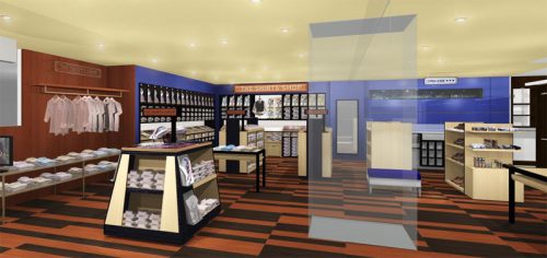 THE SHIRTS SHOPのネオンサインを設置し、広いショッピングセンター内でも取扱商品が一目でわかりやすい売場とした。