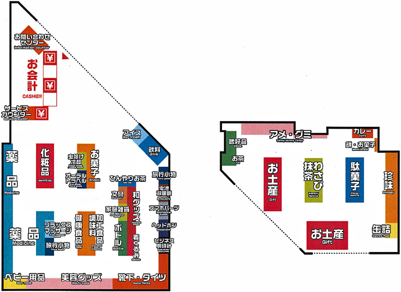 最小店舗のため、商品は、菓子を中心とした食品、医薬品、旅行小物関係を中心にそろえた。商品構成比率は食品60%、医薬品20%、旅行小物関係など20%で、約2000アイテムを展開する。