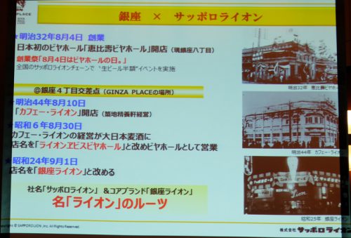 2014年3月30日にGINZA PLACEの建設のために閉店した「ビヤホールライオン 銀座五丁目店」の後継店舗。明治44年8月10日に銀座ライオンの前身となる「カフェー・ライオン」が営業していた地に出店する。