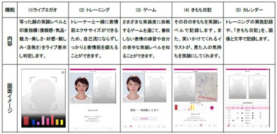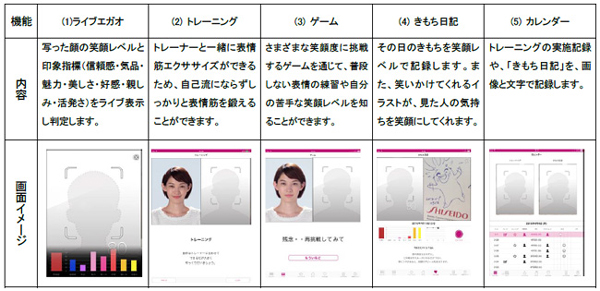 資生堂は、化粧品・美容情報の開発を通じて、長年蓄積してきた「顔・表情の印象研究」、「笑顔研究」をベースに構築し、これまで学校・企業で開催している「笑顔講座」の内容を、タブレット端末用にデジタルコンテンツ化した。